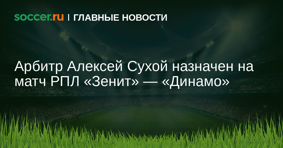 Алексей Сухой назначен главным судьей матча 13-го тура Российской премьер-лиги (РПЛ) между петербургским «Зенитом» и московским «Динамо». Об этом сообщила пресс-служба Российского футбольного союза (РФС).