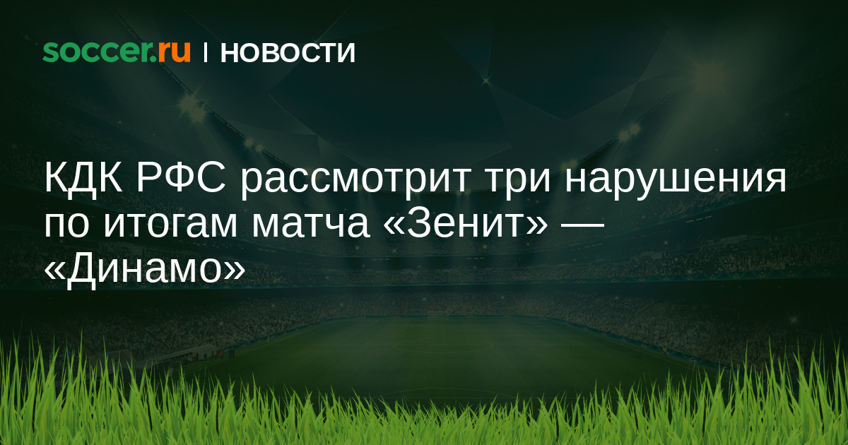 Контрольно-дисциплинарный комитет Российского футбольного союза (КДК РФС) рассмотрит три нарушения регламента по итогам матча 13-го тура Мир — Российской премьер-лиги (РПЛ) между петербургским «Зенитом» и московским «Динамо». Об этом сообщил глава комитета Артур Григорьянц.