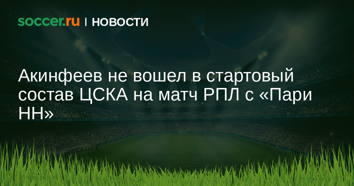 Вратарь московского ЦСКА Игорь Акинфеев не вошел в стартовый состав ЦСКА на матч 14-го тура Российской премьер-лиги (РПЛ) против футбольного клуба «Пари Нижний Новгород». Об этом сообщила пресс-служба столичной команды.