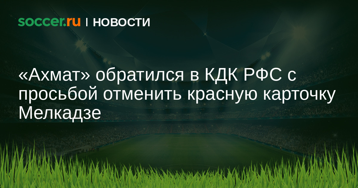 Грозненский «Ахмат» обратился в контрольно-дисциплинарный комитет Российского футбольного союза (КДК РФС) с просьбой отменить красную карточку игрока команды Георгия Мелкадзе в матче 14-го тура Мир — Российской премьер-лиги с калининградской «Балтикой». Об этом сообщил «Спорт-Экспресс» со ссылкой на пресс-службу «Ахмата».