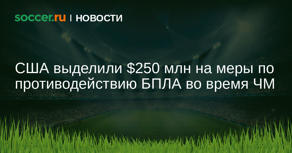 Вашингтонская администрация предоставила $250 млн властям 11 американских штатов на меры по противодействию беспилотным летательным аппаратам (БПЛА) во время чемпионата мира по футболу 2026 года. Об этом говорится в заявлении, опубликованном Федеральным агентством США по чрезвычайным ситуациям.