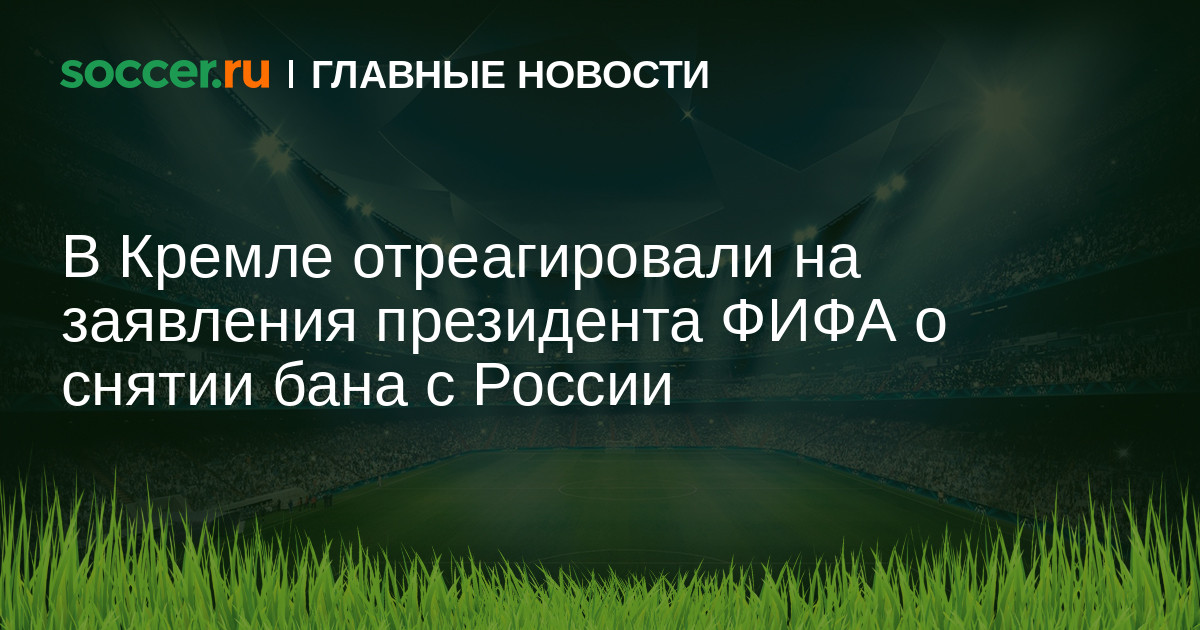 Кремль приветствует слова президента ФИФА Джанни Инфантино о возможном снятии запрета на участие российских команд в международных турнирах. Об этом заявил пресс-секретарь президента РФ Дмитрий Песков.
