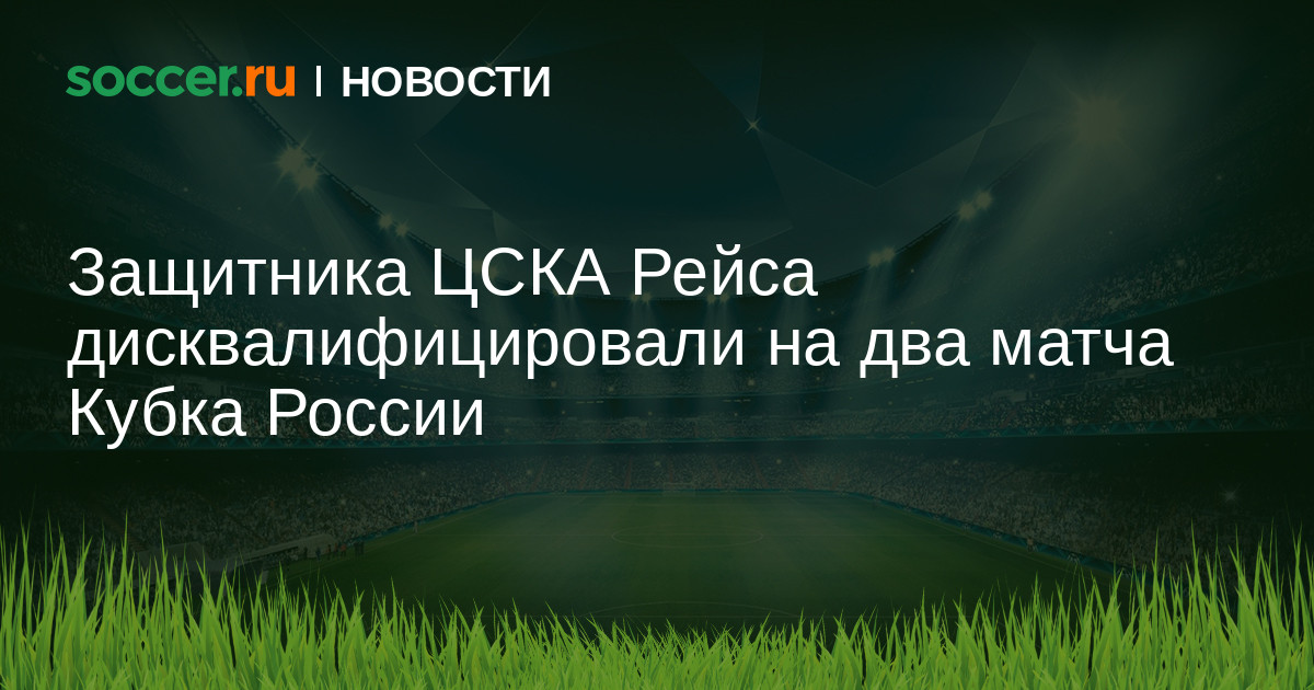 Контрольно-дисциплинарный комитет Российского футбольного союза (КДК РФС) принял решение дисквалифицировать защитника ЦСКА Матеуса Рейса на два матча Кубка России за агрессивное поведение.