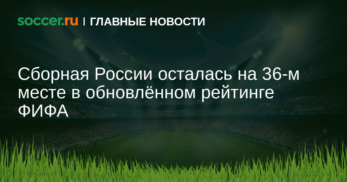Сборная России по футболу осталась на 36-й строчке в обновленном рейтинге ФИФА, имея в активе 1 525,60 балла. Позиция команды не изменилась после мартовских товарищеских встреч: в Краснодаре подопечные Валерия Карпина обыграли Никарагуа (3:1), а в Санкт-Петербурге разошлись миром с Мали (0:0).