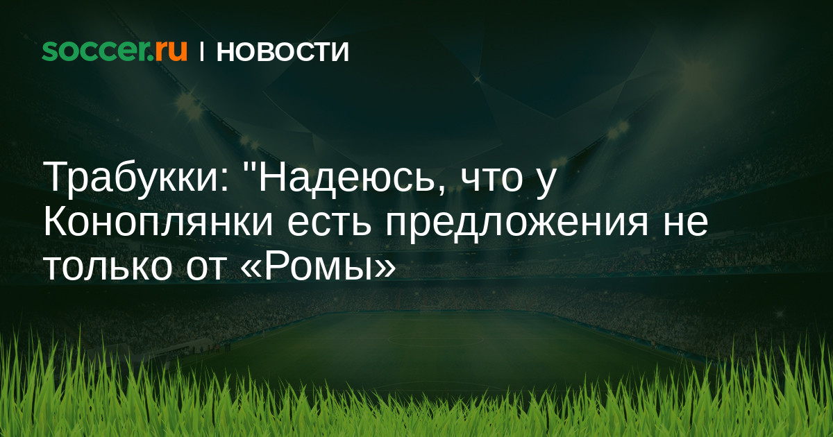 «Вчера „Рома“ еще была уверена, что подпишет контракт с Коноплянкой, но сегодня, мне кажется, появились сомнения. Хотя клубы между собой уже обо всем договорились. У меня есть подозрения, что у Жени предложения не только от „Ромы“, по крайней мере, я на это надеюсь», — заявил Трабукки в интервью каналу «Футбол 1».