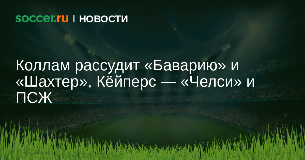 Поединок «Бавария» — «Шахтер» обслужит шотландец Уильям Коллам. Игра «Челси» — ПСЖ доверена голландцу Бьорну Кёйперсу.