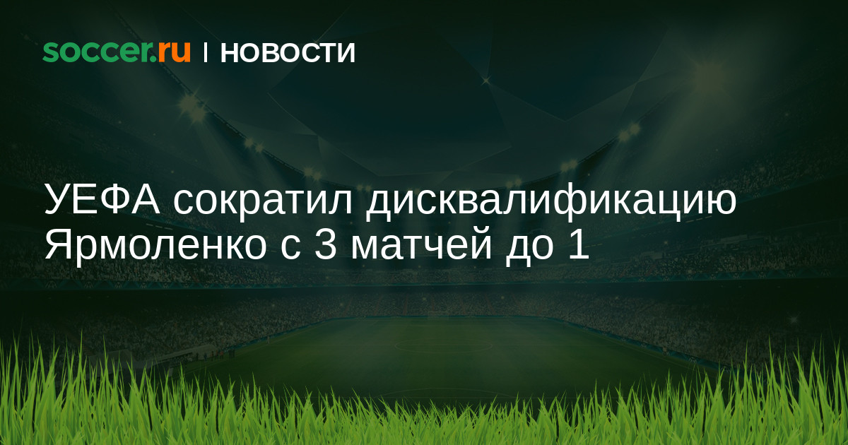 УЕФА, рассмотрев апелляцию киевского «Динамо», сократил дисквалификацию форварда Андрея Ярмоленко с трех матчей до одного.