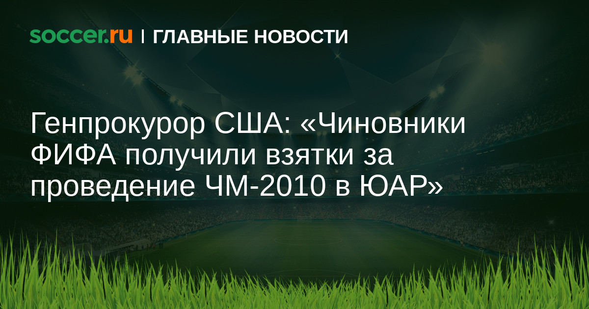 Генпрокурор США: «Чиновники ФИФА получили взятки за проведение ЧМ-2010 в ЮАР»