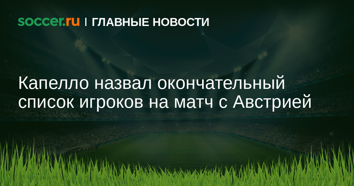 Тренерский штаб национальной сборной России во главе с Фабио Капелло определился с окончательным списком игроков, которые будут вызваны для подготовки к товарищескому матчу с Беларусью (7 июня, Химки, 18.00) и отборочному матчу Чемпионата Европы-2016 с Австрией (14 июня, Москва, 19.00).