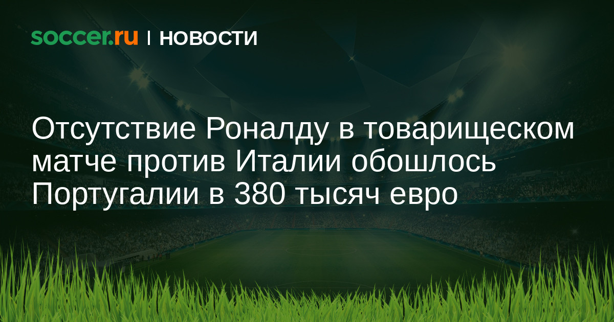 Португальская федерация футбола «попала» на 380 тысяч евро из-за того, что Криштиану Роналду не сыграл во вчерашнем товарищеском матче против сборной Италии.