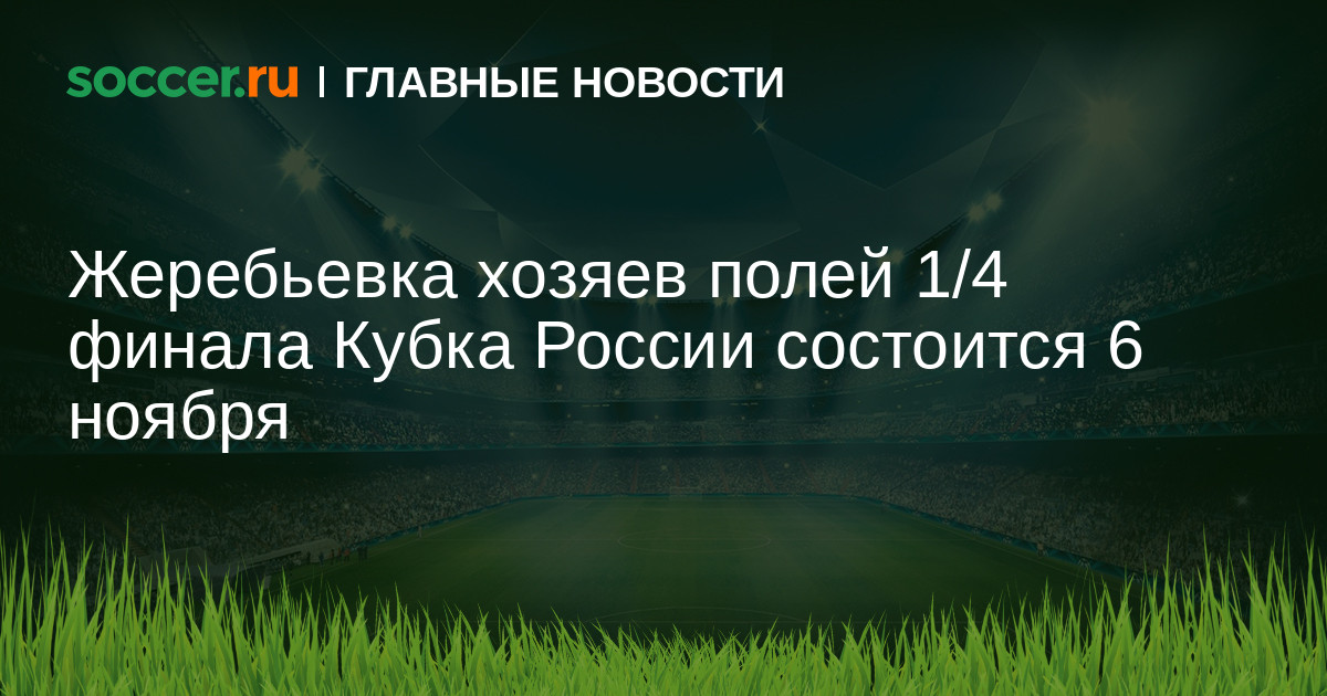 В пятницу, 6 ноября, в Доме футбола на Таганке состоится жеребьевка, в ходе которой определятся хозяева полей в четвертьфиналах Кубка России 2015/2016. Начало — 12.00.