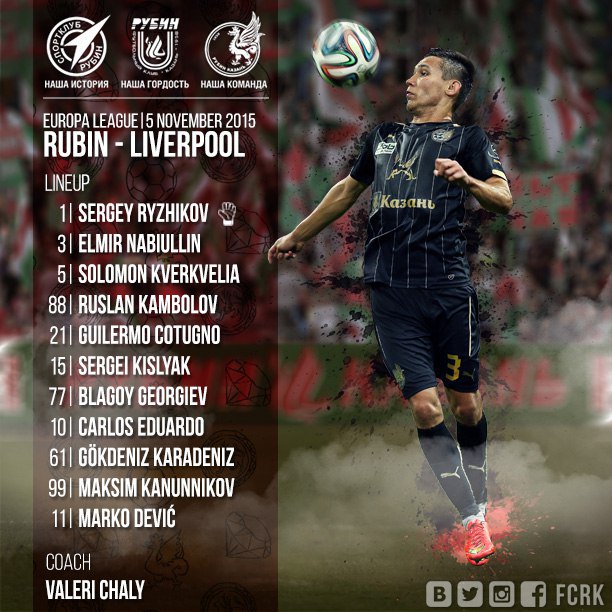 Стали известны стартовые составы «Рубина» и «Ливерпуля» на матч Лиги Европы. Напомним, что в первой встрече, которая состоялась две недели назад, команды сыграли вничью на «Энфилде».