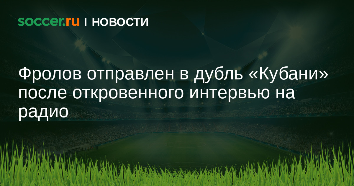 Вратарь «Кубани» Евгений Фролов отправлен в дубль из-за интервью на радио, в котором он рассказал многое о положении дел в команде. Поводом для «ссылки», как полагает источник, стали слова о том, что «Кубань» уступает лидирующие позиции в городе «Краснодару», а также о том, что полузащитник Артур Тлисов затаил обиду на «Кубань». Также Фролов упомянул в интервью, что Андрей Аршавин и Роман Павлюченко приносили пользу клубу только на тренировках. После этих заявлений Фролов не полетел на второй сбор «Кубани», оставшись тренироваться с молодежным составом.