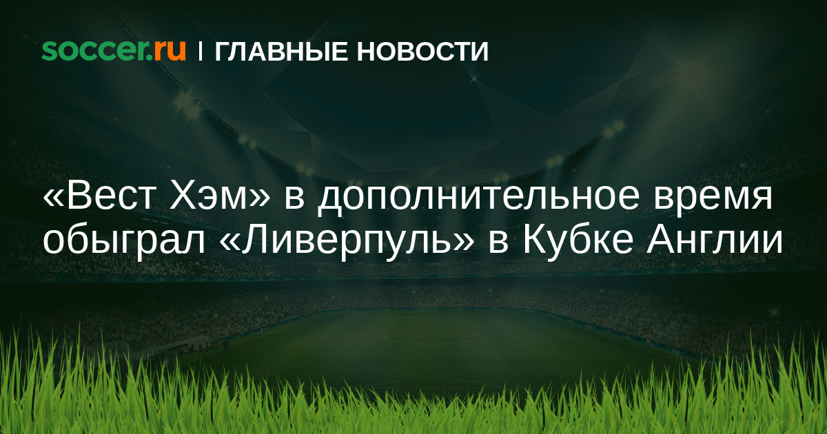 В переигровке матча 1/16 финала Кубка Англии «Вест Хэм» обыграл «Ливерпуль» со счетом 2:1. Первая встреча завершилась нулевой ничьей, основное время ответной игры тоже окончилось вничью (1:1), а в компенсированное к дополнительным таймам время «Вест Хэму» удалось вырвать победу.