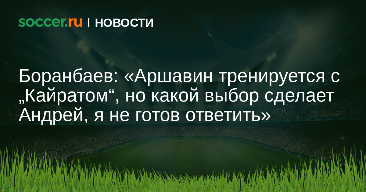 «Аршавин тут. Ведем переговоры. У нас еще есть время, чтобы договориться с ним. Сейчас он тренируется с командой. То, что к нам приехал некогда капитан сборной России, — это говорит об уважении к нашему клубу и непосредственно к Бородюку. Он профессионал. Аршавин захотел приехать, ознакомиться с городом. Это понятное дело, все-таки для него это новый вызов судьбы, новый чемпионат. Нам приятно, что последние десять дней пишут о нем и о „Кайрате“. Но какой именно выбор сделает Аршавин, я не готов ответить».