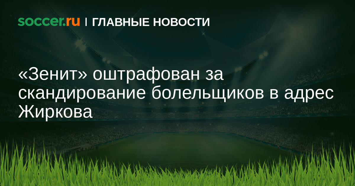 «По матчу „Зенит“ – „Кубань“ за скандирования оскорбительных выражений в адрес полузащитника „Зенита“ Юрия Жиркова клуб оштрафован на 10 тыс рублей. По регламенту штраф на Кубке России за скандирование составляет от 10 до 30 тыс рублей. Так как у „Зенита“ это первое нарушение в сезоне, назначен минимальный штраф.