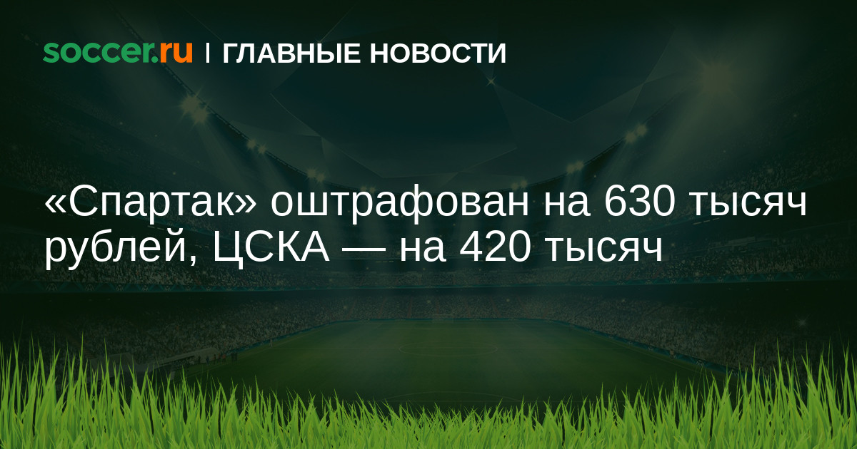 По „Спартаку“: болельщики использовали пиротехнические изделия, но не бросали их, поэтому штраф – 100 тысяч. За скандирование нецензурных и оскорбительных выражений болельщиками „Спартак“ оштрафован на 80 тысяч рублей. За баннер оскорбительного характера в адрес футболиста ЦСКА „Спартак“ оштрафован на 200 тысяч рублей. Также фанаты „Спартака“ вывесили несогласованный баннер, за что установлен штраф – 250 тысяч рублей».