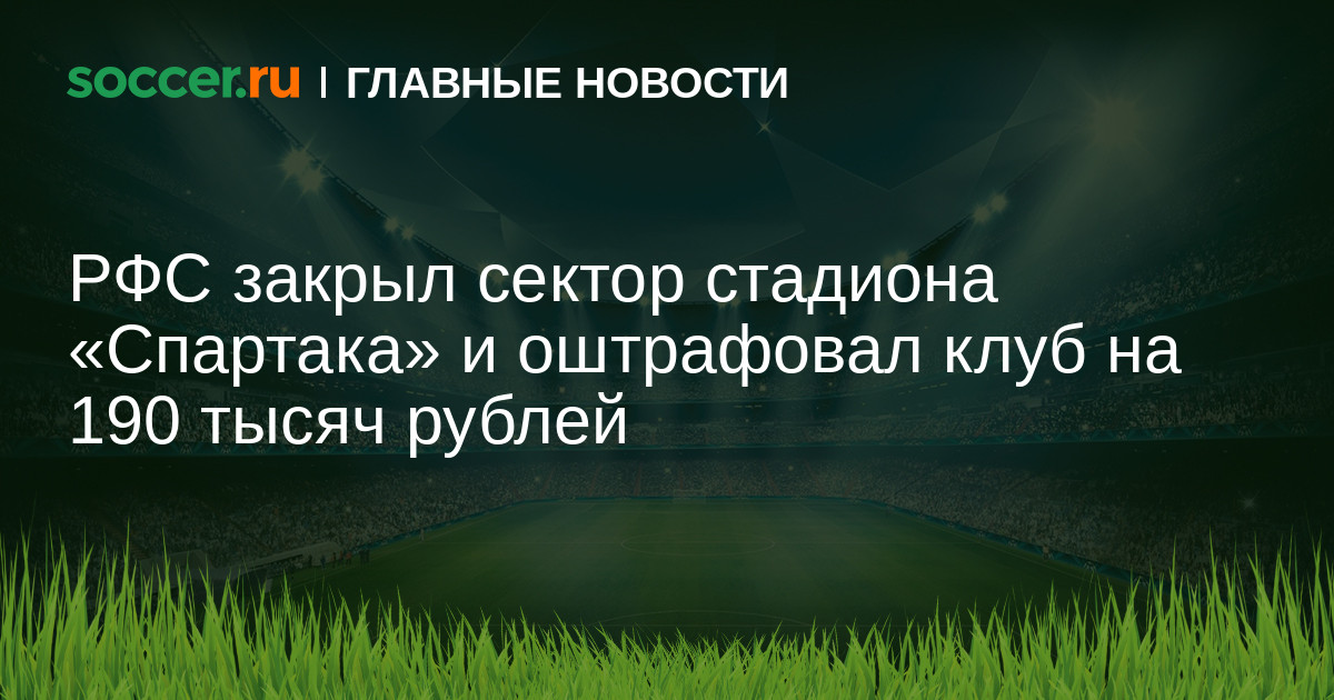 РФС закрыл сектор стадиона «Спартака» и оштрафовал клуб на 190 тысяч рублей