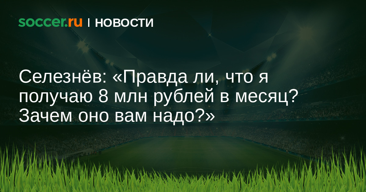 «Правда ли, что я получаю 8 млн рублей в месяц? Не хочу говорить. Зачем оно вам надо? Хотите порадоваться за меня? Так радуйтесь!» — сказал Селезнев в эфире программы «Культ тура» на телеканале «Матч ТВ».