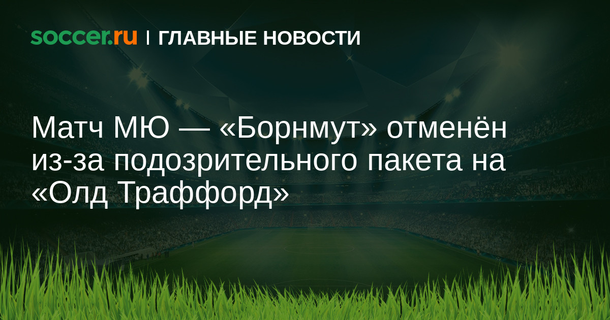 Матч 38-го тура чемпионата Англии между «Манчестер Юнайтед» и «Борнмутом» отменен. Встреча перенесена на неопределенное время из-за подозрительного пакета, найденного на «Олд Траффорд». Специалисты разбираются с тем, что в нем содержится, а тем временем организована эвакуация болельщиков и сотрудников стадиона.