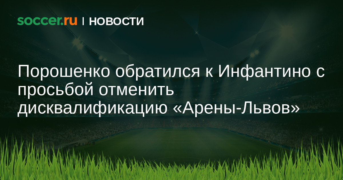 Президент Украины Петр Порошенко обратился с письмом к президенту ФИФА Джанни Инфантино с просьбой заменить наказание стадиона «Арена-Львов» на условное. Напомним, «Арена-Львов» была дисквалифицирована ФИФА после поединка Украина — Сан-Марино (9:0) осенью 2013 года за проявление на трибунах нацизма и расизма. В итоге стадион получил пятилетнюю дисквалификацию на проведение матчей сборной.
