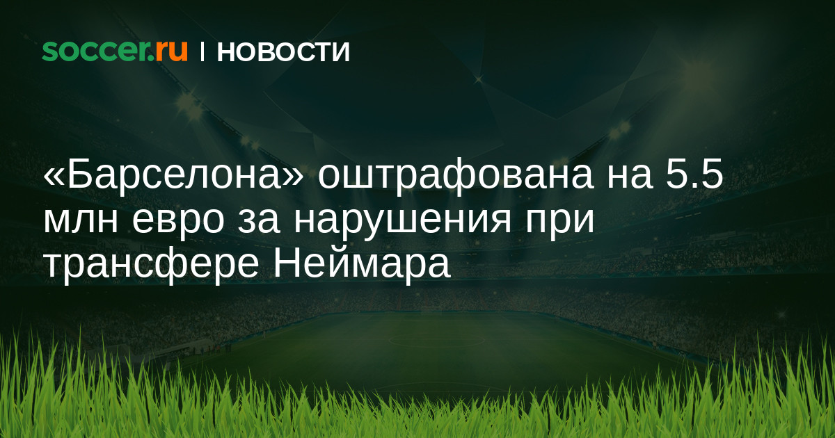 «Барселона» заплатит штраф в размере 5,5 млн евро за нарушения налогового законодательства Испании, допущенные при трансфере форварда Неймара из «Сантоса».