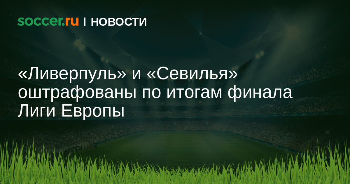 УЕФА оштрафовал «Ливерпуль» и «Севилью» за поведение их болельщиков во время финального матча Лиги Европы сезона-2015/16. Так, «красные» наказаны на 16 тысяч евро за некорректный баннер и пиротехнику, а андалусийцы — на 17 тысяч за беспорядки на трибунах и бросание посторонних предметов на поле.