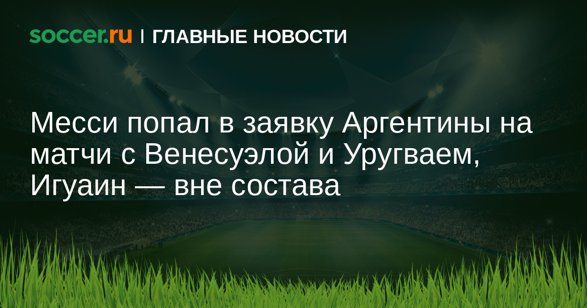 Главный тренер сборной Аргентины Эдгардо Бауса огласил список футболистов, которые вызваны на матчи отбора к ЧМ-2018 против Уругвая (1 сентября) и Венесуэлы (6 сентября). В перечень игроков попал Лионель Месси, накануне объявивший о возобновлении международной карьеры. А вот приобретение «Ювентуса» на 90 млн евро Гонсало Игуаин оказался вне заявки.