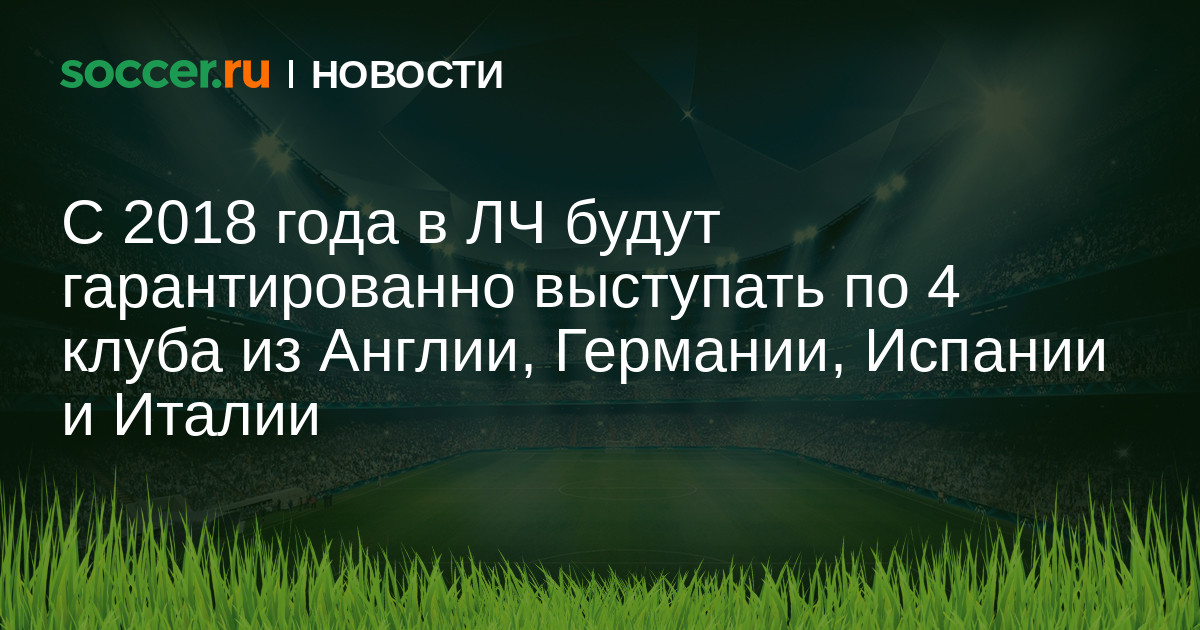 По данным журналиста британского издания Sky Sports Каве Солхекола, УЕФА сегодня объявит о серьезных изменениях в формате Лиги чемпионов. С 2018 года организация гарантированно предоставит по 4 квоты в групповой стадии турнира клубам из Англии, Германии, Испании и Италии.