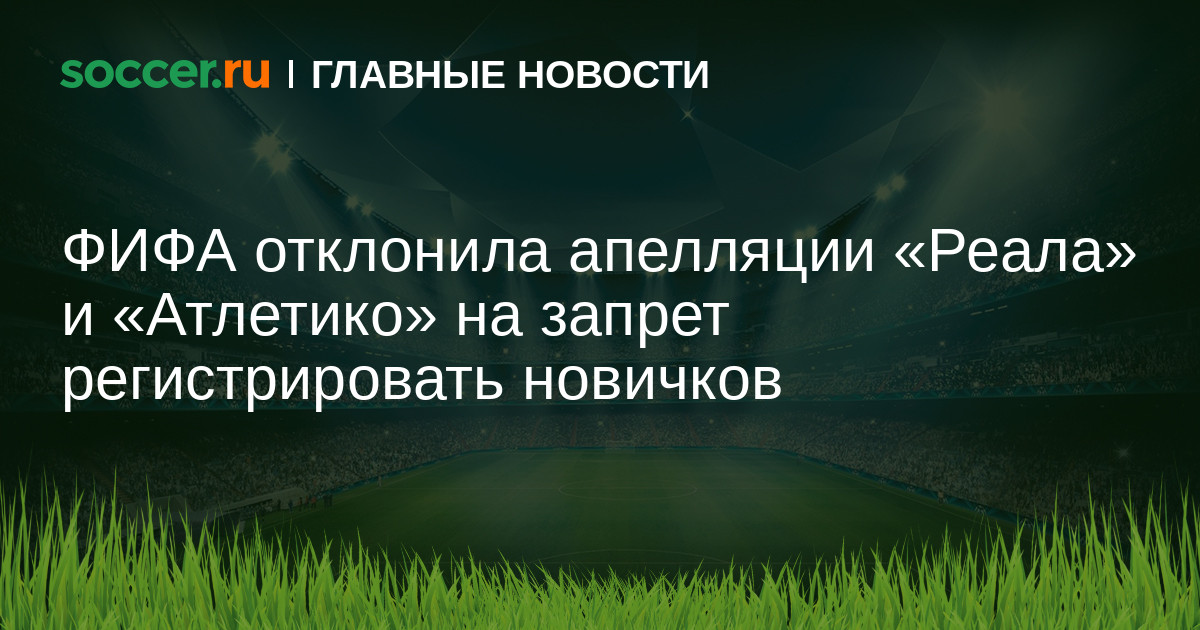 ФИФА отклонила апелляции «Реала» и «Атлетико» на решение запретить командам регистрировать новых игроков. За нарушение правил регистрирования футболистов, не достигших 18 лет, мадридские клубы подверглись наказанию и не могут подписывать новичков в течение двух трансферных окон.