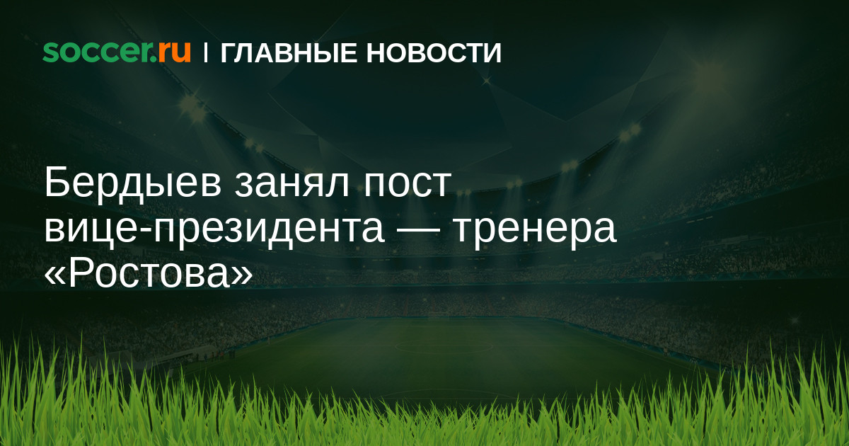Бывший главный тренер «Ростова» Курбан Бердыев получил новую должность в клубе. Специалист назначен на пост вице-президента – тренера. В его обязанности будет входить развитие инфраструктуры клуба и детско-юношеского футбола. Также он будет консультировать тренеров основного и молодежного составов «Ростова». Ранее клуб объявил о назначении Ивана Данильянца новым наставником команды.