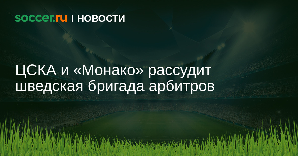 Матч 3-го тура группового этапа Лиги чемпионов ЦСКА — «Монако» обслужит шведская бригада арбитров во главе с Мартином Стрембергсоном. Помогать ему будут Даниэль Густавссон и Йоаким Амри Нильссон. Дополнительные рефери – Мохаммед Аль-Хаким и Гленн Нюберг, четвертый судья – Пер Брогевик.