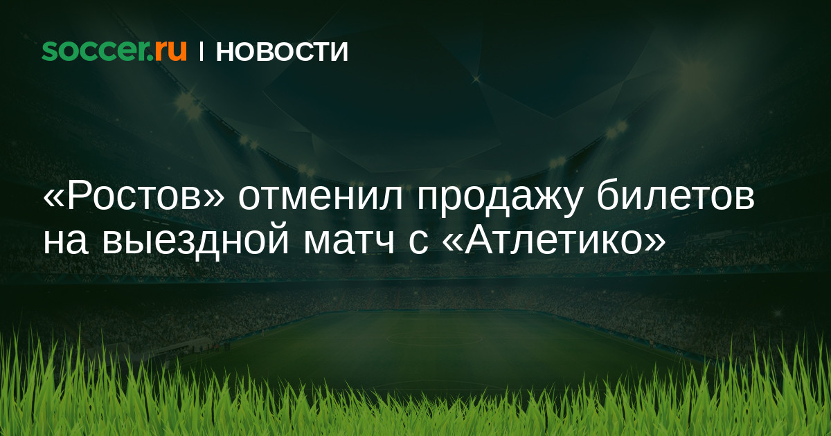 Пресс-служба «Ростова» сообщила об отмене реализации билетов в кассах стадиона «Олимп-2» на выездной матч Лиги чемпионов с «Атлетико», который состоится 1 ноября.
