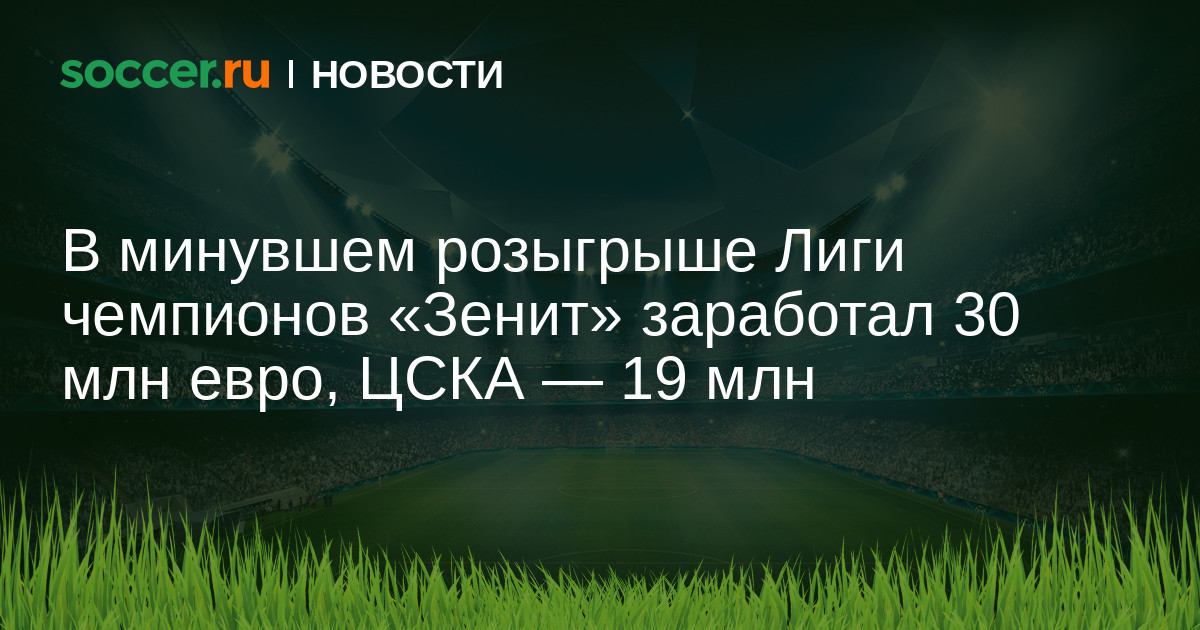 ЦСКА в сумме выручил 19 млн 211 тысяч евро. 2 млн евро армейцы заработали за участие в плей-офф раунде квалификации. Еще 12 млн евро досталось команде за участие в групповом турнире. 2 млн 108 тысяч евро москвичи заработали за набранные очки в играх группового этапа. Еще 3 млн 103 тысячи евро — доходы ЦСКА от продажи телевизионных прав.
