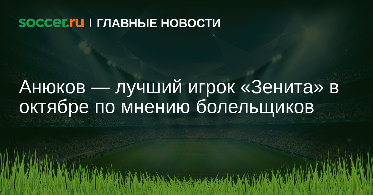 Защитник «Зенита» Александр Анюков признан болельщиками команды лучшим игроком клуба в октябре. 34-летний игрок принял участие в пяти матчах, из которых четыре «Зенит» выиграл. Второе место в рейтинге занял Жулиано, а замкнул тройку Аксель Витсель. В общей сложности Анюков провел за «Зенит» 378 матчей, забив в них 12 голов и сделав 26 голевых передач.
