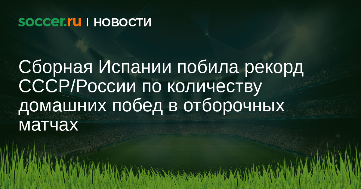 Сборная Испании побила рекорд России (с учетом матчей команды СССР) по количеству побед в домашних матчах в отборочных турнирах чемпионатов мира и Европы. Вчерашний успех с командой Македонии (4:0) стал для испанцев 93-м в домашних матчах отборочных турниров, что является новым рекордом. На счету сборной СССР/России 92 победы.