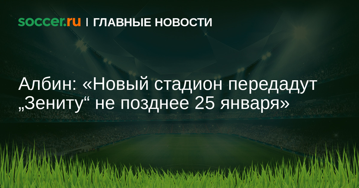 Вице-губернатор Петербурга Игорь Албин сообщил, что строящийся стадион «Зенита» будет передан управляющей компании клуба из Санкт-Петербурга не позднее 25 января 2017 года: