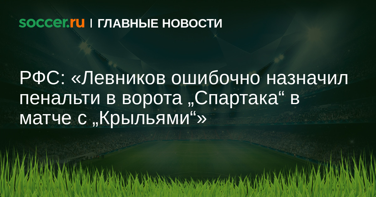 Представитель департамента судейства и инспектирования РФС Леонид Калошин сообщил, что арбитр Кирилл Левников неверно назначил пенальти в ворота «Спартака» в матче 16-го тура чемпионата России с «Крыльями Советов».