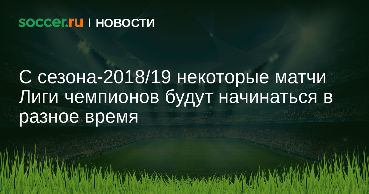 С сезона-2018/19 УЕФА изменит время начала некоторых матчей группового этапа Лиги чемпионов. Так, теперь поединки игрового дня будут начинаться не в одно время, а в 21:00 и 23:00 мск. Две встречи будут играться в 21:00, а еще шесть — в 23:00, чтобы зрители могли посмотреть как можно больше матчей.