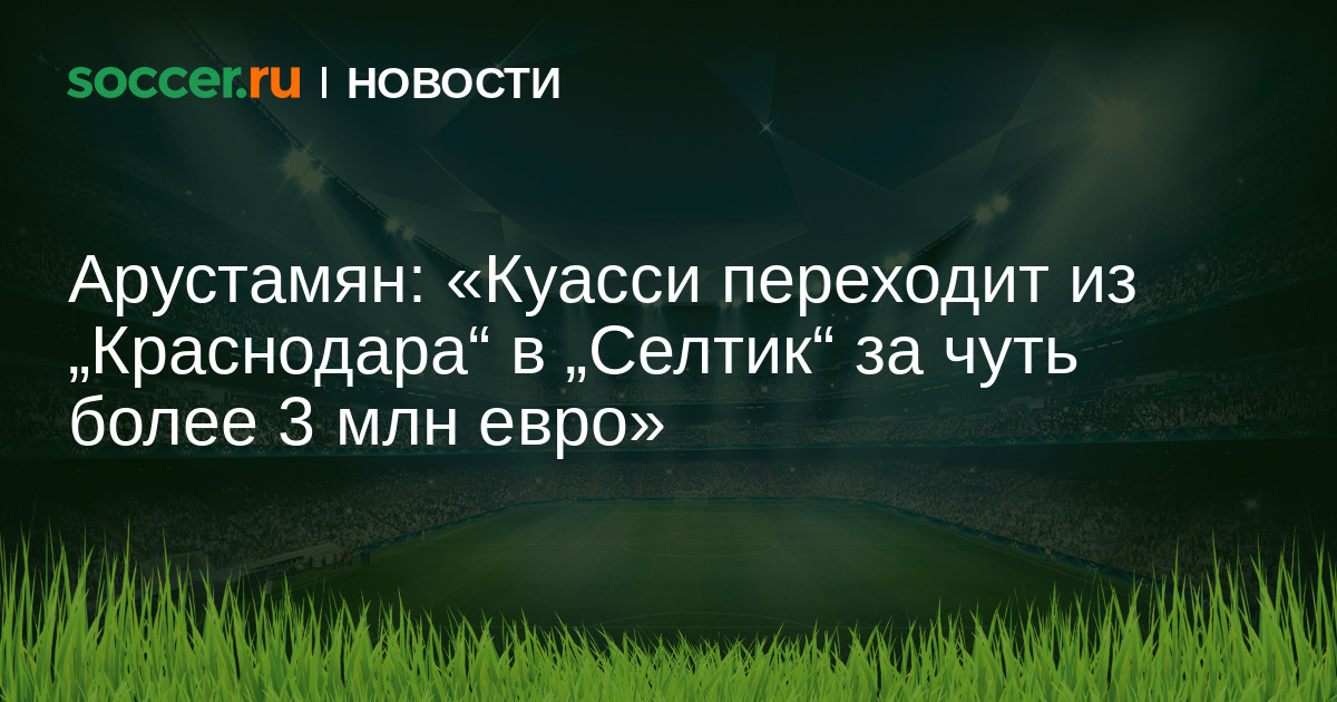 «Эбуэ Куасси из „Краснодара» переходит в „Селтик" за чуть более 3 млн евро. При этом Краснодар сохраняет 15 % от трансфера игрока", — пишет Арустамян в своем «твиттере».