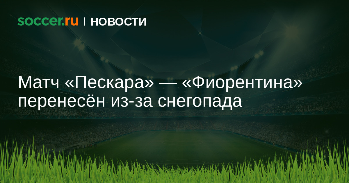 Матч чемпионата Италии между «Пескарой» и «Фиорентиной» перенесен из-за сильного снегопада. Сотрудникам стадиона удалось сохранить газон, однако условия в целом признаны непригодными для проведения матча. Велик риск оледенения. Из-за этого в городе сложилась опасная дорожная ситуация.