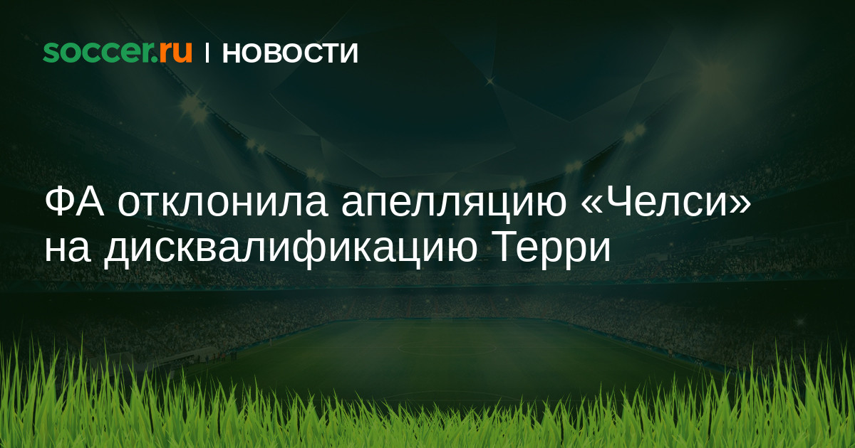 Защитник «Челси» Джон Терри будет дисквалифицирован на один матч за красную карточку, полученную им в матче Кубка Англии с «Питерборо». «Челси» обжаловал удаление, однако Футбольная ассоциация оставила наказание в силе. Таким образом, Терри пропустит следующий матч.