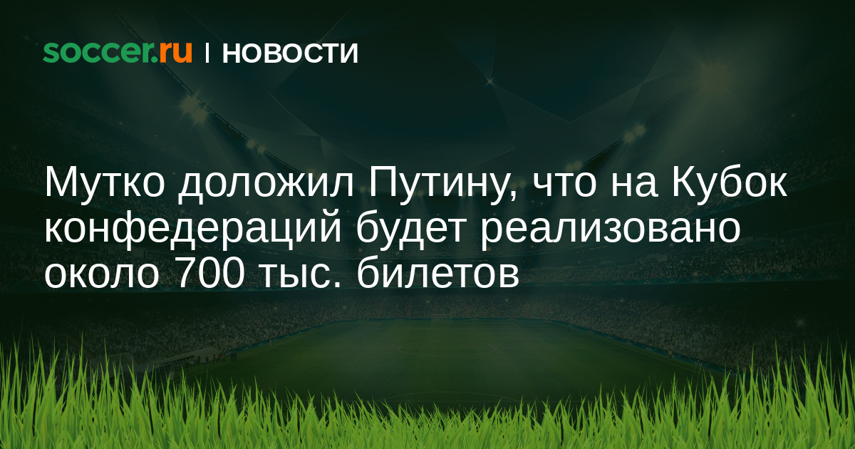 Вице-премьер РФ Виталий Мутко на встрече президента России Владимира Путина с членами правительства доложил, что на грядущий Кубок конфедераций должно быть продано порядка 700 тысяч билетов.