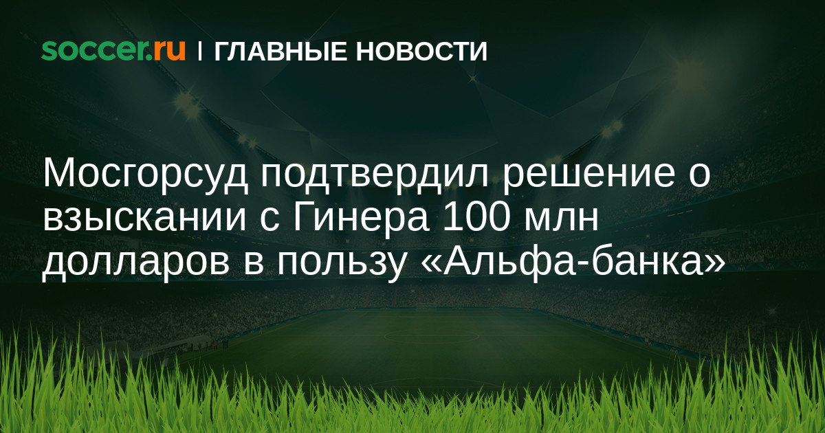 Мосгорсуд признал законным взыскание с президента ЦСКА Евгения Гинера около 100 миллионов долларов в пользу «Альфа-банка».