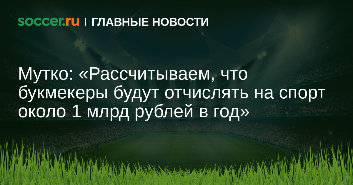 Президент РФС Виталий Мутко рассчитывает, что букмекерские конторы будут выделять на финансирование спорта около 1 млрд рублей в год.