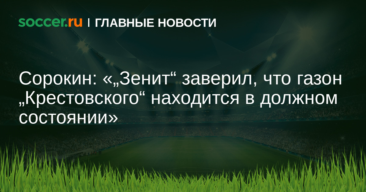 Генеральный директор оргкомитета «Россия-2018» Алексей Сорокин сообщил, что на прошлой неделе получил от «Зенита» и властей Санкт-Петербурга заверение в том, что газон стадиона «Крестовский» находится в надлежащем состоянии, хотя сегодня агентство Regnum сообщило, что газон на новой арене «практически загублен»: