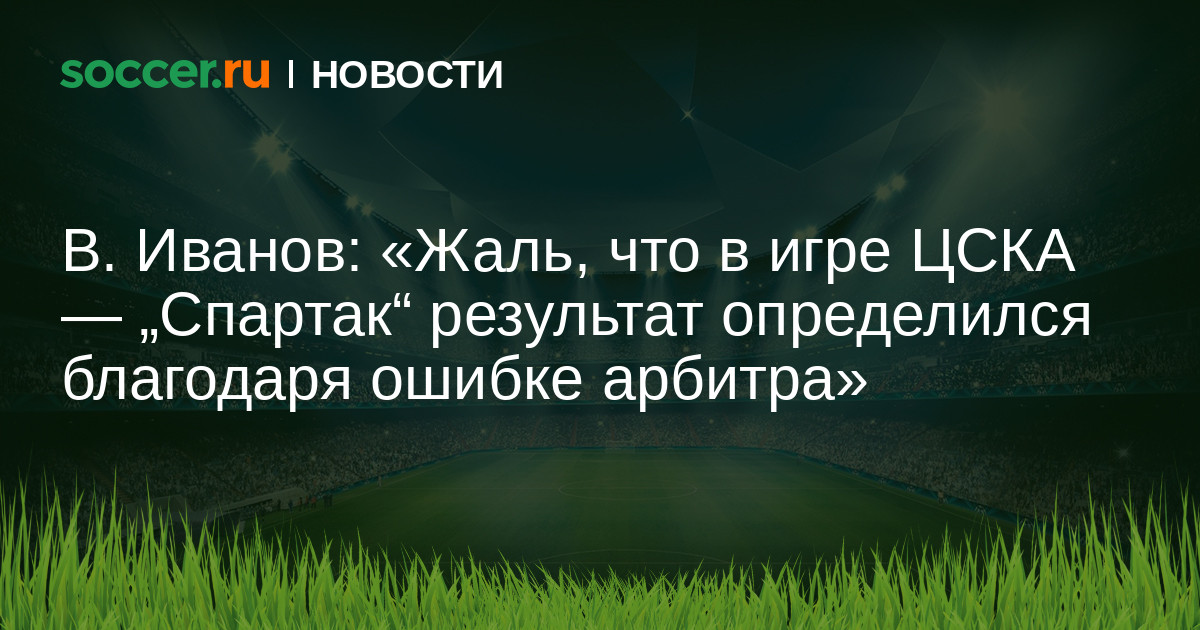 Руководитель департамента судейства и инспектирования РФС Валентин Иванов выразил сожаление, что на итоге дерби ЦСКА – «Спартак» сказалось ошибочное решение дополнительного арбитра.