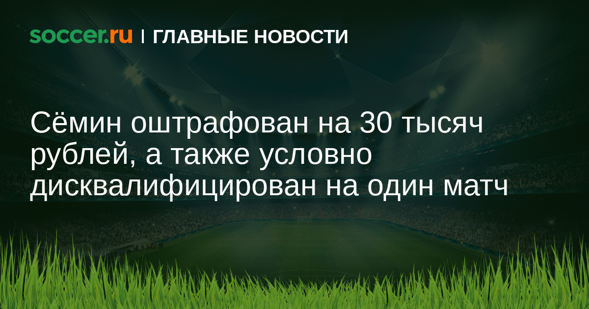 Председатель Контрольно-дисциплинарного комитета РФС Артур Григорьянц рассказал, что главный тренер «Локомотива» Юрий Семин оштрафован на 30 тысяч рублей за неоднократный выход за пределы технической зоны без разрешения судьи, а также условно дисквалифицирован на один матч: