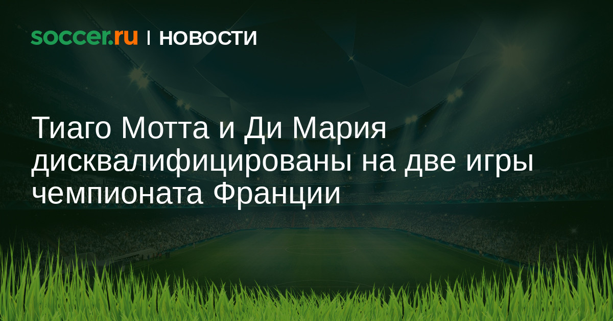 Полузащитники ПСЖ Анхель Ди Мария и Тиаго Мотта получили по два матча дисквалификации. Такое решение было принято на заседании дисциплинарного комитета лиги.