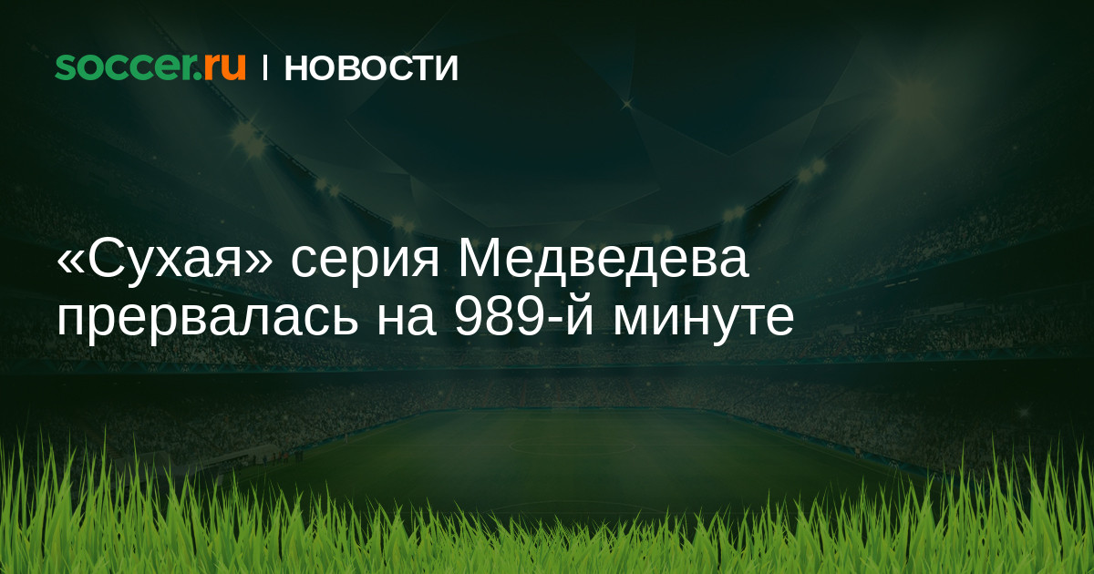 Пропущенный на 37-й минуте встречи мяч от нападающего «оружейников» Никиты Бурмистрова остановил хронометр серии на отметке в 989 минут — именно столько минут подряд Медведев держал свои ворота в матчах РФПЛ на замке, что является рекордом чемпионатов России.